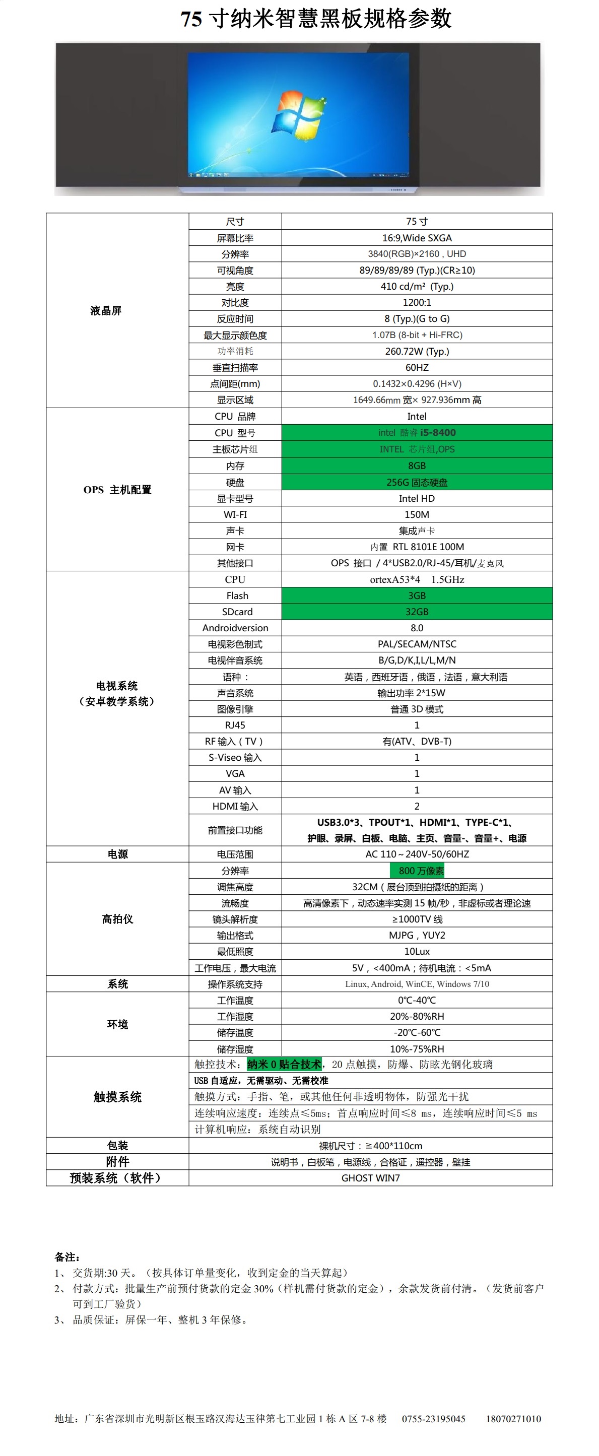 75寸納米智慧黑板: